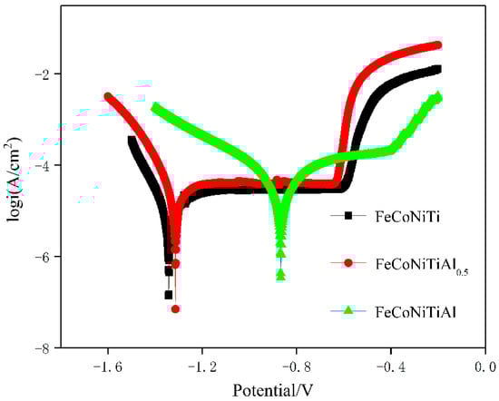 Polarization curves of FeCoNiTiAlx high-entropy alloy coatings in 3.5% NaCl solution.