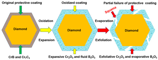 Schematic illustration of the oxidation mechanism related to the Cr–B–C coated diamond.