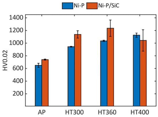 - Ahmadkhaniha, D.; Eriksson, F.; Zanella, C. Optimizing heat treatment for electroplated NiP and NiP/SiC coatings. Coatings 2020, 10, 1179. [Google Scholar] [CrossRef]