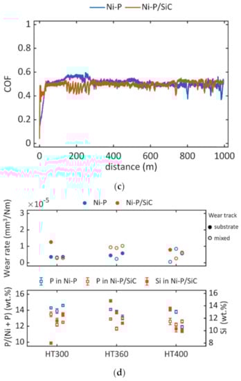 | Ni–P/SiC | i | 1.2 × 10−5 | substrate | 9.4 × 10−6 | mixed | 7.9 × 10−6 | substrate |
