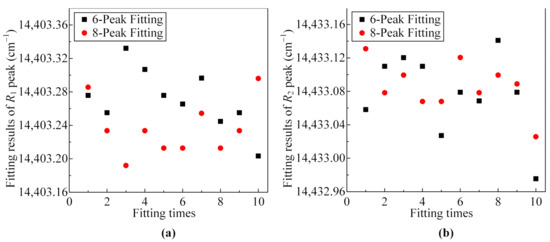 - The fitting results show that the Psd-Voigt function is not sensitive enough to small stress when fitting the Cr3+ photoluminescence spectrum, even though its GOF is relatively high. Both Gaussian and Lorentzian functions can accurately identify the peak shifts corresponding to different stresses.