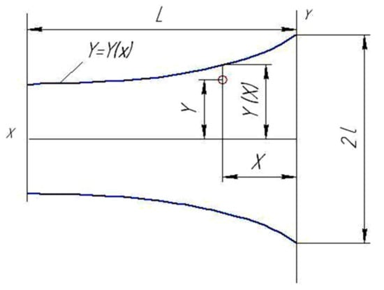 When calculating by the condition y(x) ≥ l, the width of the operating device along the entire length remains constant.