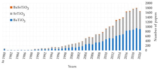 The number of papers related to SrTiO3-, BaTiO3- and BaSrTiO3-based gas sensors from 1980 to 2020.