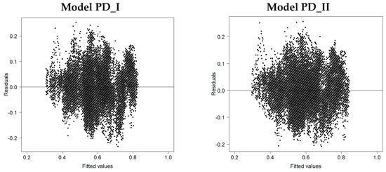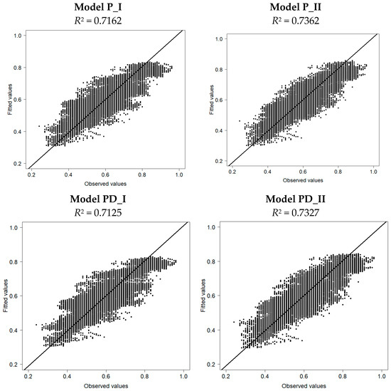 Finally, the AIC and BIC values of Models PD are lower than those of Models P (Table 9 and Table 10), indicating that Models PD provide a better fit to the data.
