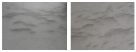 The stain resistance of exterior wall paints was tested according to GB/T9780-2005 [25]. The test boards were treated in the same way as in the previous water-resistance test. In terms of the configuration of fly-ash water, the fly ash was mixed with water in the ratio of 1:1 (mass). Following up were tests of the original reflection coefficients of the cured test boards and the reflection coefficient of the paint template after brushing and rinsing according to GB/T9780-2005The decline rate of the reflection coefficient of the paint is expressed by Equation (1):