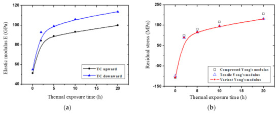 - The results show that the elastic modulus of the ceramic layer measured under com-pression is greater than that under tension, and the elastic modulus of the ceramic layer increases first and then tends to be stable as the heat treatment time increases. In addition, the residual stress of the TBCs ceramic layer quickly changes from compressive stress to tensile stress with heat treatment, and the tensile stress increases with the increase in thermal exposure time.