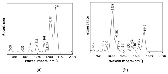 The IR spectrum of the protein G (a) and EGFR antibody (b).