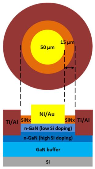 Cross-section of the Schottky diodes fabricated on n-GaN.
