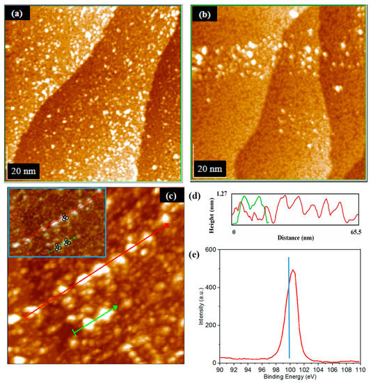 - Tanaka, K.; Jiang, X.; Shimojo, M. Growth of nano-crystalline metal dots on the Si (111)-7 × 7 surface saturated with C2H5OH. Surf. Sci. 2007, 601, 5093–5097. [Google Scholar] [CrossRef]