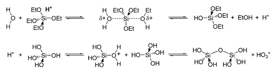 - Schubert, U. Chemistry and fundamentals of the sol–gel process. In The Sol-Gel Handbook; Levy, D., Zayat, M., Eds.; Wiley-VCH: Weinheim, Germany, 2015; Chapter 1; pp. 3–27. [Google Scholar]