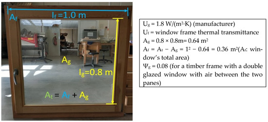 The thermal transmittance (U-value) readings for the two windows were undertaken according to the ISO 9869-1:2014 [18] and to the BS EN ISO 10077-2 [26]. The required parameters to calculate the thermal transmittance of a window (Uw) are the following: The value of the window’s frame (Uf), the value of the double-glazed pane (Ug) and also the length (area) of the window frame and the glass.