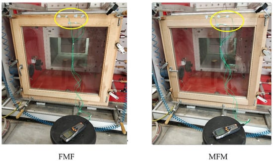 Table 5, displays the two window’s thermal transmittance values. From this it can be seen that the FMF window shows slightly better (lower) thermal transmittance value than the MFM window. This can be attributed to the slightly lower density of the fir wood compared to meranti wood (0.43 and 0.47 Kg·m−3 respectively), to its lighter color and to the presence of resin canals in the fir wood [49,50]. It is known that thermal conductivity of a material depends on its temperature, moisture and density. Generally, light materials are better insulators than heavy materials because light materials often contain enclosures. When it comes to insulation, the lower the thermal conductivity the better insulation capacity; if a material conducts heat well, a lot of heat will be lost through that material. This difference is translated into a 13.3% better thermal behavior of the FMF window. A smaller U-value means smaller heat transfer rate, so less energy loss.