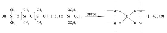 Vulcanization reaction of Room temperature vulcanized silicone. DBTDL: dibutyltin dilaurate.