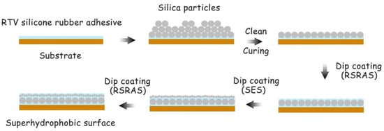 Preparation of superhydrophobic coating. RSRAS: RTV silicone rubber adhesive solution; SES: silica–ethanol suspension.