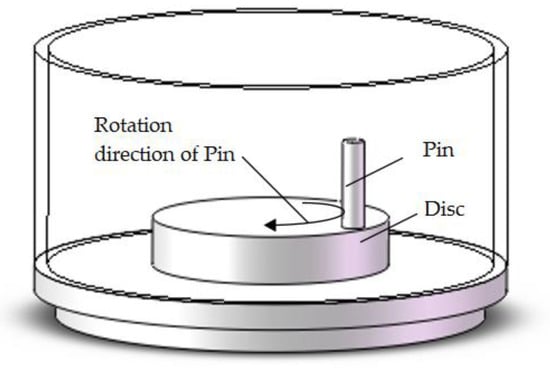 Figure 1 shows schematic drawing of the pin-on-disc wear test. The container and disk are fixed. The motor drives the rotation of the pin, which slides on the surface of the disk. The disc is located in a steel vessel and loaded by the loading system. The contact surface is immersed in the soil and there is relative sliding between the pin and disc. The friction coefficient is displayed in the computer, which is connected to the machine through sensors. Figure 2 shows the actual situation of the friction and wear experiment between the pin and the disk, which includes soil, rhizomes of peanut, and small stones. The proportion of them is 11:7:2.