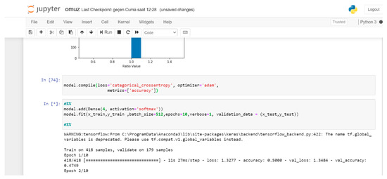 Data augmentation was applied to the existing X-ray images before the training set was presented to the model. In the study, the size of dataset was increased by a factor of 2 with rotating the X-ray images 180 degrees. Because of this, the size of the images was preserved. Then, the images in the dataset were brought to equal size (128 × 128) by preprocessing. In the study, K-Folds Cross Validation was used to determine the training and test set. In K-Folds Cross Validation, the data is divided into k different subsets. While the k-1 subset is used for training, the last subset is used for testing. The average error value obtained as a result of k experiments stated the validity of the model. Firstly, the K value was tested as 10 and 15. With these values, the accuracy rate did not increase significantly. However, the training period increased considerably. Therefore, the K value was determined as 5 in the study. After the learning processes of the models were completed, the models were validated with the test set (Figure 6).
