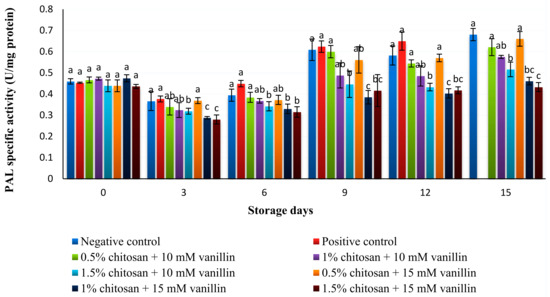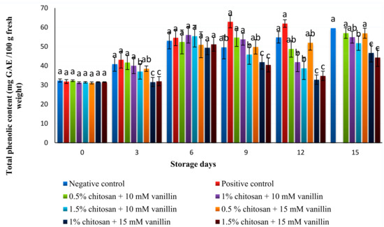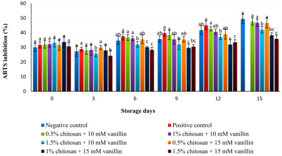 | 0.5% chitosan + 15 mM vanillin | 31.25 b | 34.16 bc |
