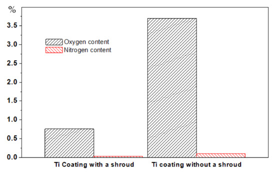 The contents of nitrogen and oxygen in the plasma-sprayed titanium coatings with and without the shroud.