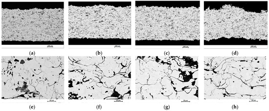 Figure 3a) as a certain amount of pressure would be necessary to intrude the mercury into this uneven surface. This explanation was further confirmed by the higher amount of large pores in this coating, i.e., there was about 1% of additional porosity in the size range above 10 µm. It is assumed that the roughness does not have a direct effect on the coating process and hence the porosity of the bulk sample.