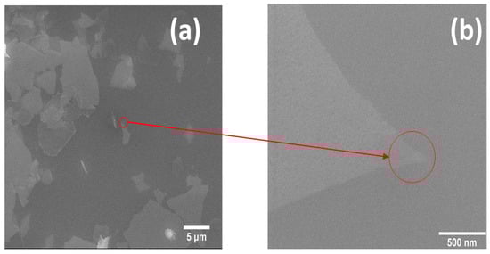 SEM image of GNPs dip-coated on Si/SiO2 substrates (a) and its magnification (b). Reprinted from Ref. [34] with permission from IOP Publishing. Copyright 2019 IOP Publishing.