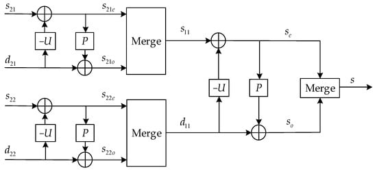 The reconstruction process of LSWT also includes three steps: Undo update, Undo predict and Merge. The reconstruction after 2-level decomposition is shown in Figure 3.