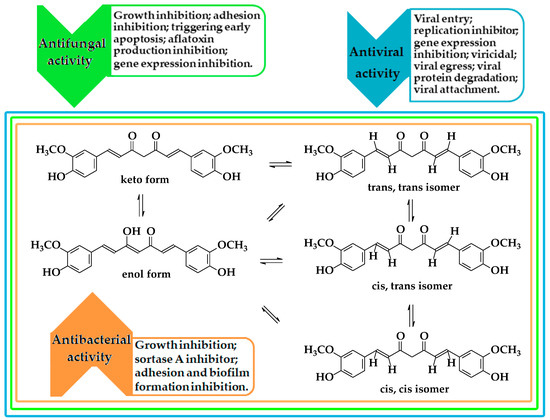 - Praditya, D.; Kirchhoff, L.; Brüning, J.; Rachmawati, H.; Steinmann, J.; Steinmann, E. Anti-infective Properties of the Golden Spice Curcumin. Front. Microbiol. 2019, 10, 912. [Google Scholar] [CrossRef]