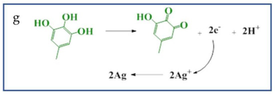 - Veisi, H.; Moradi, S.B.; Saljooqi, A.; Safarimehr, P. Silver nanoparticle-decorated on tannic acid-modified magnetite nano-particles (Fe3O4@TA/Ag) for highly active catalytic reduction of 4-nitrophenol, Rhodamine B and Methylene blue. Mater. Sci. Eng. C 2019, 100, 445–452. [Google Scholar] [CrossRef]