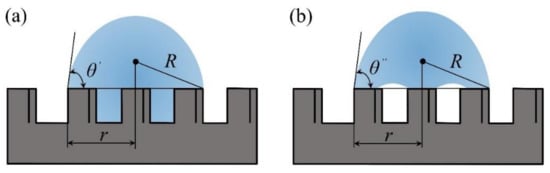28] are often used to predict the contact angle of micro- to nanostructures. At present, the research on droplet wetting behavior is mainly focused on regular nanostructures such as grid shape and square column array [