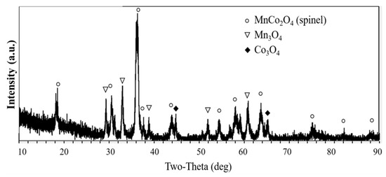 - Aukrust, E.; Muan, A. Phase Relations in the System Cobalt Oxide-Manganese Oxide in Air. J. Am. Ceram. Soc. 1963, 46, 511. [Google Scholar] [CrossRef]
