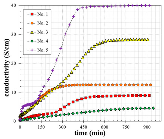 | No. 5 | 10 S/cm | 39 S/cm | 40 S/cm |