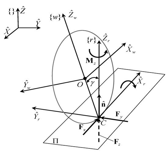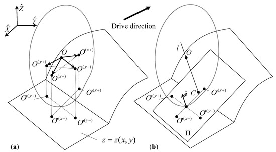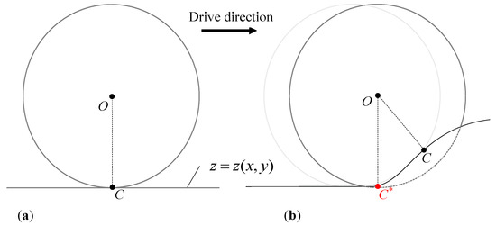 34]. Additionally, usually the procedure for determining the contact point is associated with a specific tire model. The main aim of the authors in this article was to create a universal mathematical methodology that would allow arbitrary modeling of the road surface on a macro scale, regardless of the tire model in three-dimensional space.