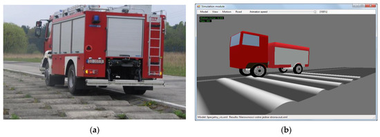 The vehicle moved at a constant speed equal 15 km/h in 4 s. A detailed model of this vehicle with sub-components is presented in proprietary papers [
