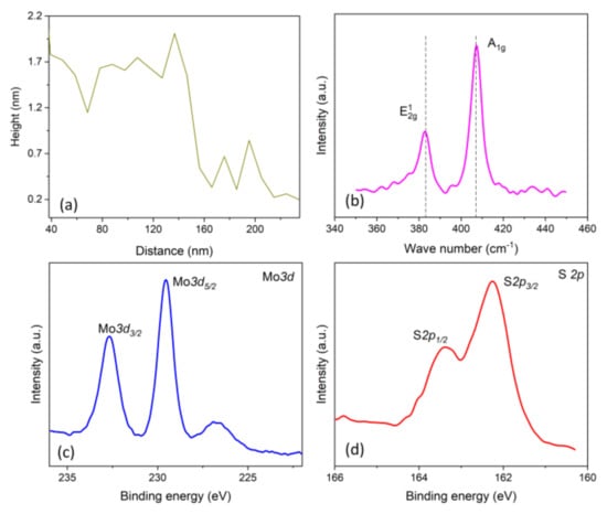 Figure 3c,d show the XPS data of the obtained MoS