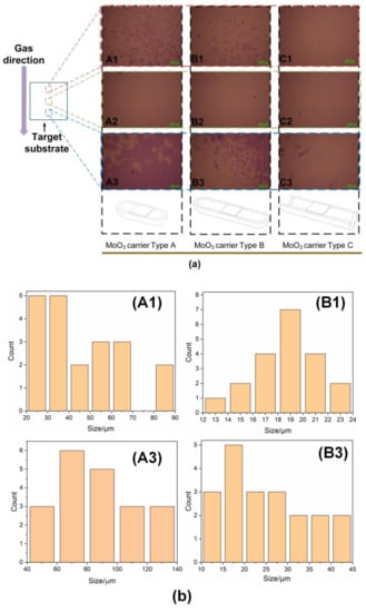 3 powder and target substrate were obstacles that caused perturbation within the carrier gas. Thus, three types of typical quartz boat carrier of MoO
