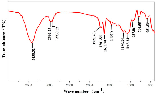 Figure 4 depicts the FT-IR spectra of the PEO-S2 coating covered by the silane film. The broad peak at 3438 cm−1 was assigned to the OH vibrations [33,34,35,36]. The subsequent peaks at 2962 and 2930 cm−1 could be assigned as asymmetric stretching of –CH3 and CH2– [21,31,32,33,34,35]. The peaks at 1701 cm−1 and 1637 cm−1 could be assigned to –COO stretching vibration and C=C-stretching vibration [36,37,38], respectively. Additionally, the characteristic absorption bands for Si–O–Si appeared at 1180, 1065, and 937 cm−1, indicating that the hydrolysis and subsequent condensation reaction occurred between MPTES and TEOS at pH 3.5, resulting a well-developed and cross-linked polymeric chain with Si–O–Si bonds [21,34,35,36,37,38,39,40]. Additionally, due to the incomplete condensation of the Si–OH group, an absorption peak appeared at 790 cm−1 (Si–O–C vibrations) [21,32,36].