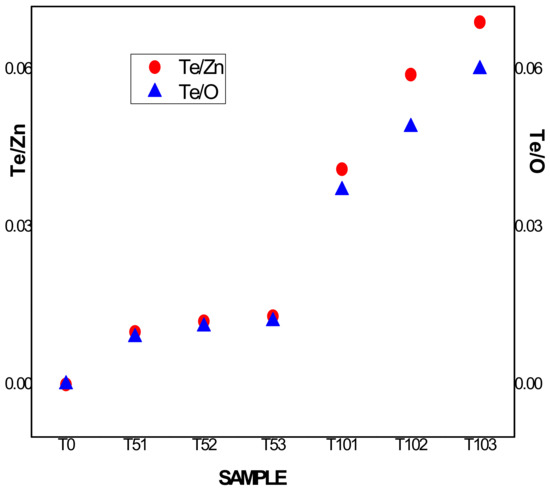 Te/Zn and Te/O ratios behavior for both sample series.