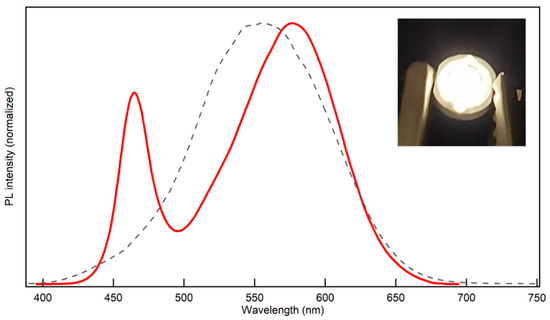 Figure 2), which is attributed to reabsorption. However, the PL spectrum still matches with the eye sensitivity function (dashed line in