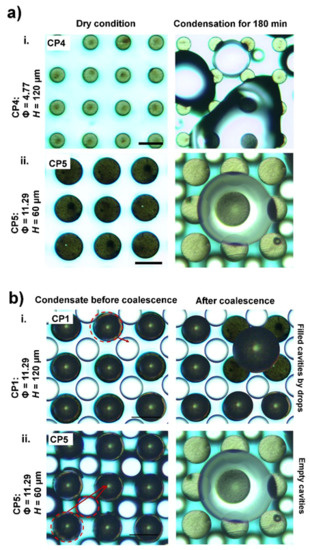 - Dorrer, C.; Rühe, J. Condensation and wetting transitions on microstructured ultrahydrophobic surfaces. Langmuir 2007, 23, 3820–3824. [Google Scholar] [CrossRef] [PubMed]