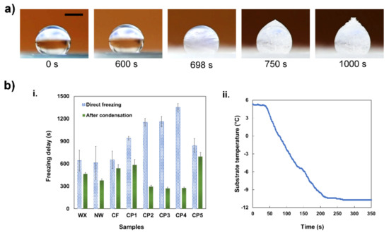 - Wang, F.; Ding, W.; He, J.; Zhang, Z. Phase transition enabled durable anti-icing surfaces and its DIY design. Chem. Eng. J. 2019, 360, 243–249. [Google Scholar] [CrossRef]