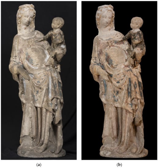 The object of this study is a polychrome limestone statue representing the Virgin with the Child, from Palazzo Madama in Turin (Figure 1) [1,2,3]. The work of art has been the subject of a thesis work [4] University of Turin in collaboration with the Foundation Centro Conservazione e Restauro “La Venaria Reale”, during the academic year 2017–2018.