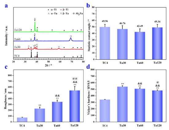 Zhang, M.; Ma, Y.; Gao, J.; Hei, H.; Jia, W.; Bai, J.; Liu, Z.; Huang, X.; Xue, Y.; Yu, S.; et al. Mechanical, Electrochemical, and Osteoblastic Properties of Gradient Tantalum Coatings on Ti6Al4V Prepared by Plasma Alloying Technique. Coatings 2021, 11, 631. https://doi.org/10.3390/coatings11060631
