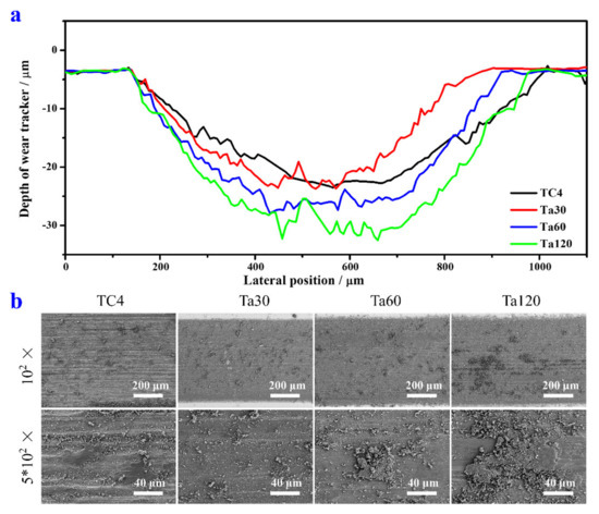 | Sample | Wear Width b/mm | Wear Depth h/10−3 mm | Wear Volume Wv/10−3 mm3 |