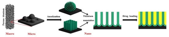 AM Ti implants with unique micro- and nanotopography, which can be used as a nano drug delivery system by combining AM technology and anodization. Adapted with permission from ref. [116]. Copyright 2020 Elsevier.
