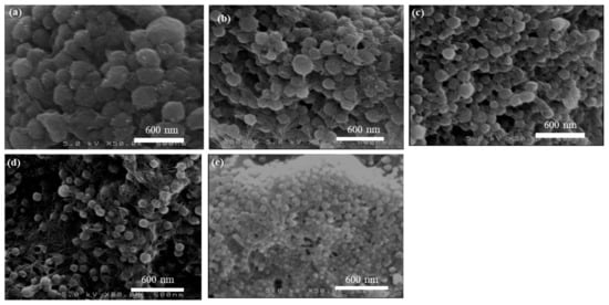 SEM images of SD-ChNF/polystyrene composite particles for (a–e) runs 1–5.