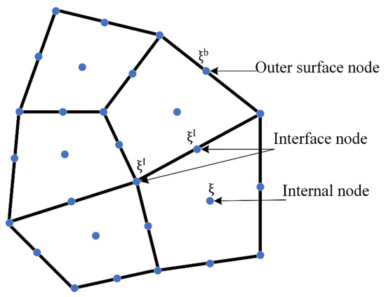 As shown in Figure 3, the element nodes in the structures meshed with isoparametric elements can be clarified into three types according to their distributions, i.e., internal nodes located within the elements, interface nodes between elements, and outer surface nodes along boundaries.