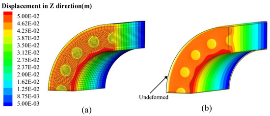 Displacement in the Z direction obtained by (a) Abaqus and (b) TP-EDM.