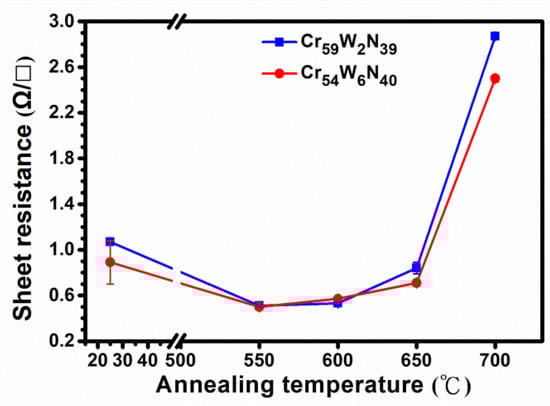 Sheet resistance of the annealed Cu/CrWN/Cr/Si samples.