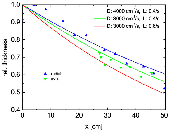 - The radial distribution shows an influence of the entrance gate at the left (at negative radii), Figure 7, which are numerically fitted with an erfc function.