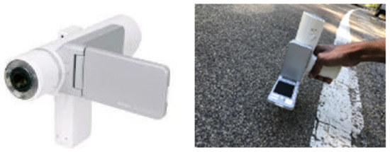 (a) Manual marking of different aggregate loss severity spots on the HFS test section and (b) illustration of different devices’ measurement footprint in each spot.