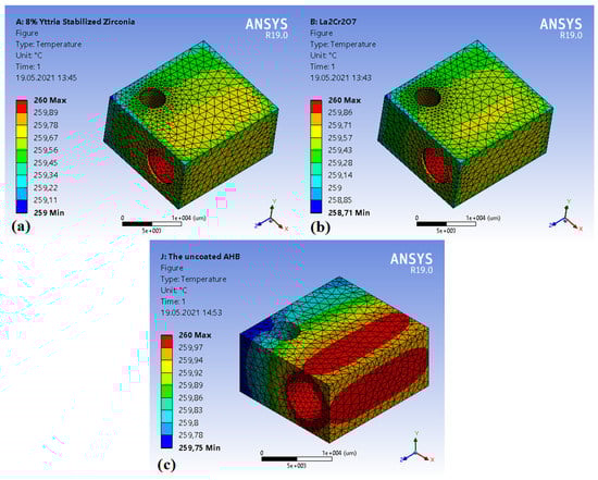 - The operating temperature of the AHB is lower than the maximum operating temperature of TBC materials. Therefore, thermal expansion and crack formation caused by temperature will be reduced [34]. Due to the low thermal expansion coefficient of YSZ, it will have a longer life than La2Cr2O7. The validity of using the coating method for 3D printers operating at high temperatures (approximately 500 °C) requires further experimental studies;